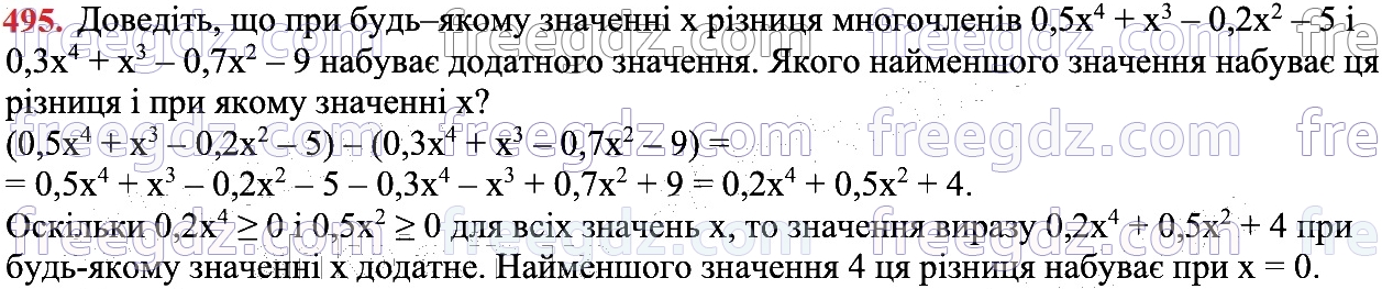 ГДЗ (відповіді та розв'язання) до вправи №495 - § 11. Додавання і віднімання многочленів - Розділ 2. Цілі вирази |
